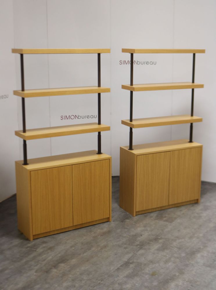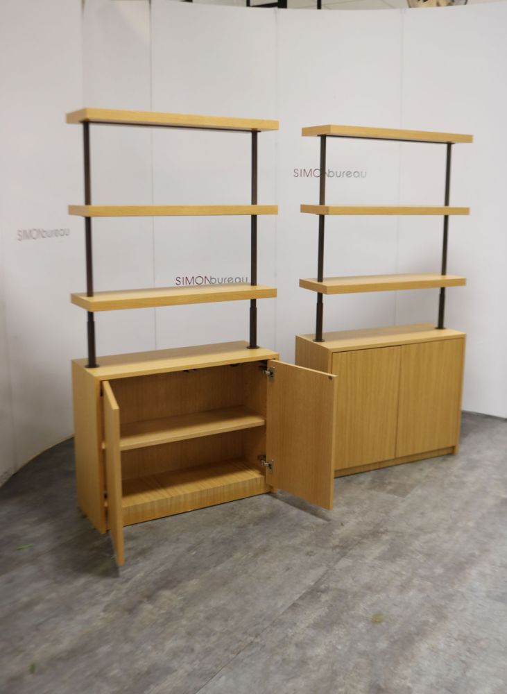 Cette bibliothèque d'occasion en finition chêne clair est vendue en un lot de 2 unités. Dédiée pour structurer un espace de travail, ce type de meuble séduit par son esthétisme et sa polyvalence. Très tendance dans le mobilier de bureau actuel, cette vitrine, reconditionnée offre à la fois chaleur naturelle et structure industrielle.