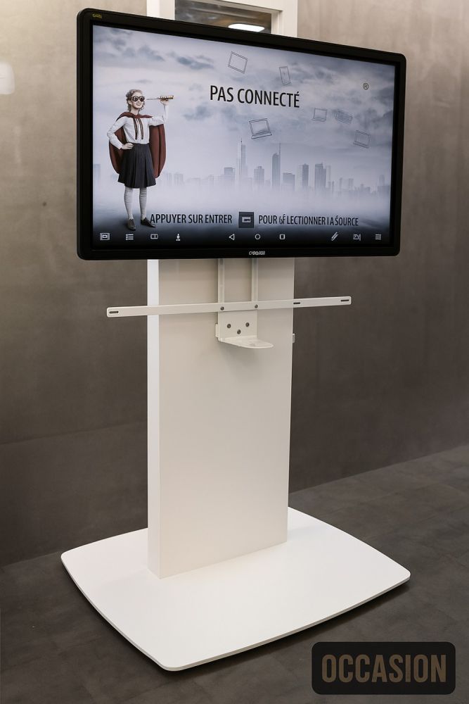 Cet écran interactif d'occasion provient du catalogue CTOUCH. Il s'installe dans un bureau, un espace de travail collaboratif, une salle de réunion, une zone de formation, une université ou une école.