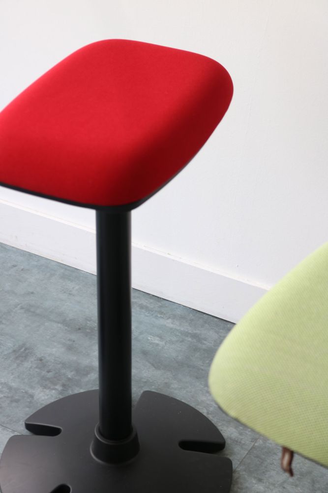 B-Free Sit Stand, se compose d'un revêtement en tissu de couleur : beige, rouge ou verte. Ce tabouret B-Free est idéal pour les open space, flex office, bureaux assis-debout, les espaces de coworking et les ateliers de formation.