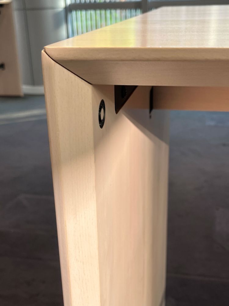 Cette table haute détient un plan de travail de 180 cm de longueur sur 100-120 cm de profondeur.