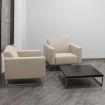 Ce salon d'accueil se compose de 2 sofas et peut être accompagné d'une table basse. D'esthétisme classique, rétro, vintage ou industriel, ces sofas sont habillés d'un somptueux revêtement tissu beige apprécié par sa douceur et son aspect chic.